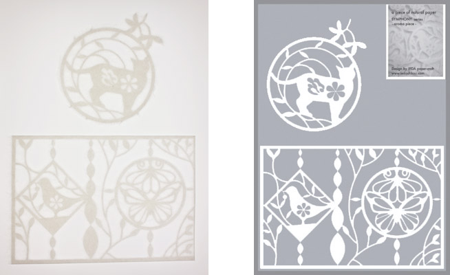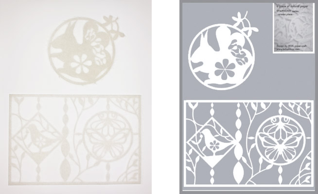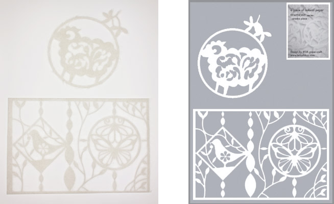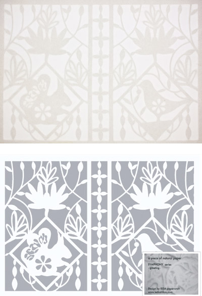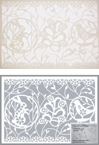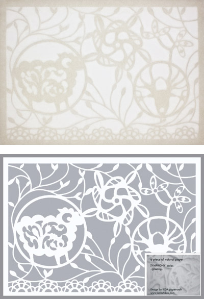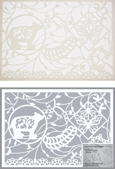 SYMPHONYシリーズは、ノアの方舟の物語をモチーフに、いろいろな動物がデザインされた模様が透かし柄として漉き込まれています。