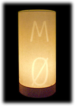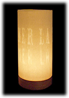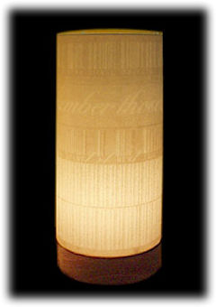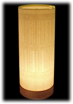 A3シリーズ同様に羽良多氏のデザインしたタイポグラフィを、美濃手漉き和紙レリーフを作るように漉き込んだ和紙を火袋(シェード)に使用してあります。