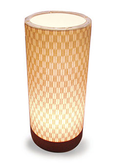 日本の伝統的文様の中から、市松・矢絣・鱗の3つの素材を漉き込んだ和紙をランプシェードに使用してあります。この和紙には胡桃の木の実の皮を使い天然染色で楮を染めた原料と楮そのままの2種類の原料を使い分けて、さりげなく立体的に小紋が浮かび上がるように工夫されています。